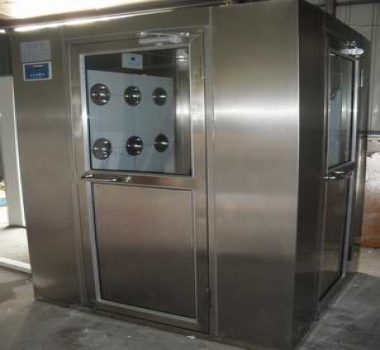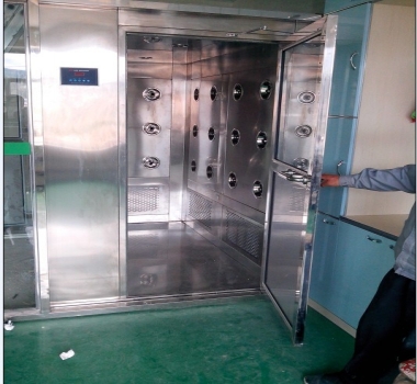 風(fēng)淋室,從非潔凈區(qū)進(jìn)入,關(guān)門后紅外線感應(yīng)有人就吹淋,吹淋時(shí)雙門自動(dòng)鎖閉,吹淋后入
